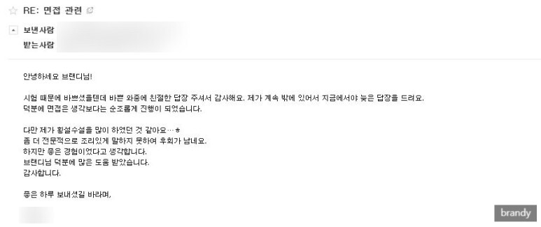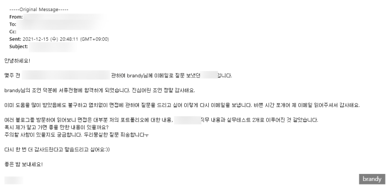 요 몇 주 간 이전에 했던 인턴 자소서, 면접 관련해서 메일을 주고받는 분이 계셨다.