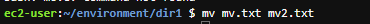 mv.txt를 mv2.txt로 바꾸기 위해서는 아래와 같이 입력이 필요합니다.