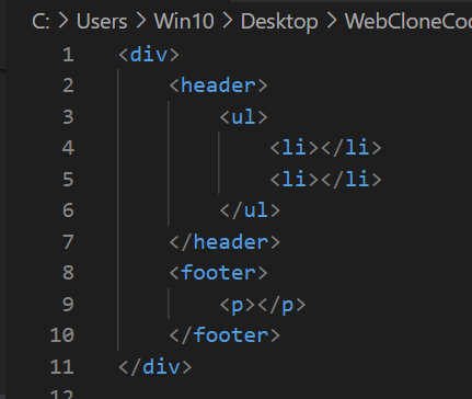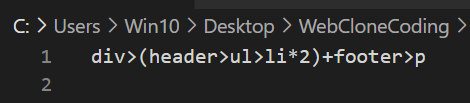 자식 관계는 > 에서 하위 관계로 들어갔다면, 형제 관계는 코드에서 같은 줄에 위치해야겠죠? (들여쓰기X)
