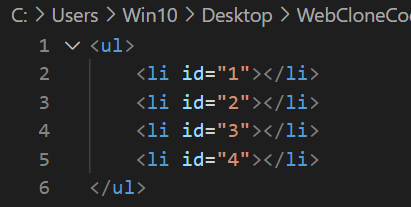 만약, <div> 태그 안에 <ul> 태그 안에 <li> 태그를 순서대로 자식 요소로 배치하고 싶다면?