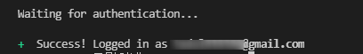 6. 구글에서 로그인이 연동되면, VSCode에서도 Success! 라는 문구와 함께 firebase에 잘 로그인이 되었다는 것을 확인하실 수 있습니다.