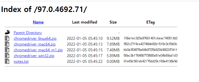 나는 97.0.4692.71 버전을 사용하고 있기 때문에 크롬드라이버도 해당 버전에 맞게 설치해주어야 한다. (가뜩이나 버전에 민감한 IT 계열이니 ..)