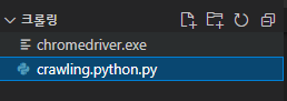 chromedriver.exe 파일이 VSCode 디렉토리 내에 뜨게 되고, 크롤링을 하기 위해 디버깅을 실행해보면