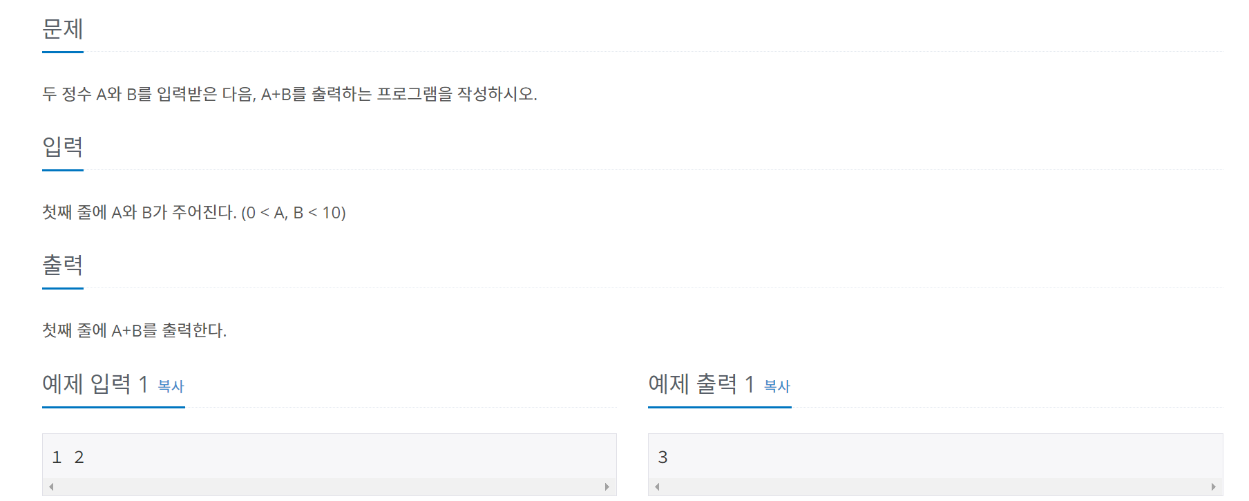 내가 한 방법처럼 따로 받아도 문제는 없지만 1000번 문제에는 위배된다는 것.