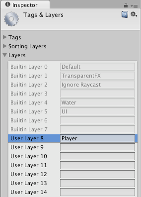 새 Layer을 만들면 Layer을 GameObject에 할당 할 수 있다.