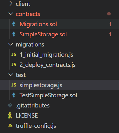 contracts파일, migrations 파일, test, client(Frontend)로 구성된다.