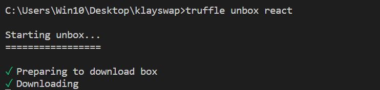 1. React에서 truffle을 사용해주기 위해 'truffle unbox react'를 사용해준다.
