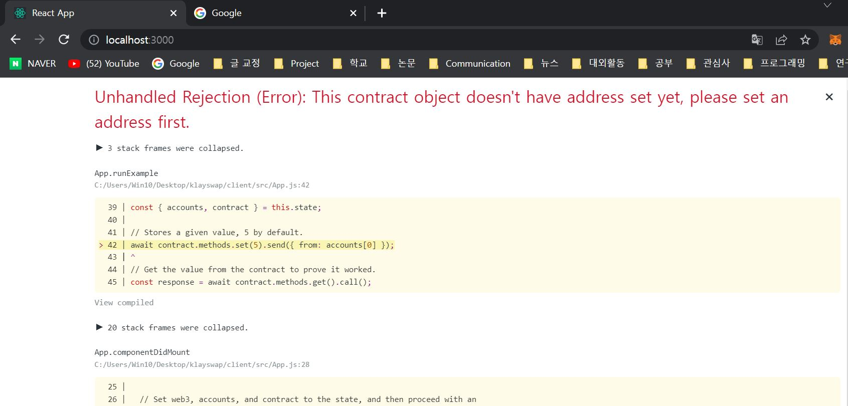 이거는 Metamask 지갑 문제이다. 아마 네트워크 설정이 잘못 되어있어서 발생하는 오류이다.