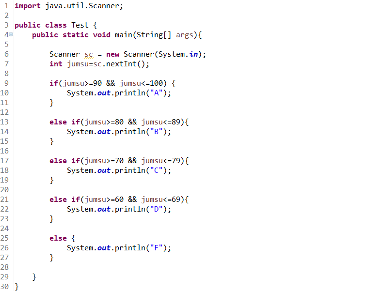 if~else if~else 구문 - if문 사용 시 구간대별에 따른 조건이 다양하게 걸려있을 경우 사용.