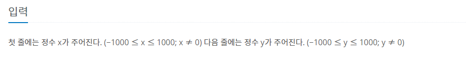 사분면 고르기 문제이다. 사분면 학창시절 때 함수 구할 때 많이 봤던 건데 ,, 오랜만이다.