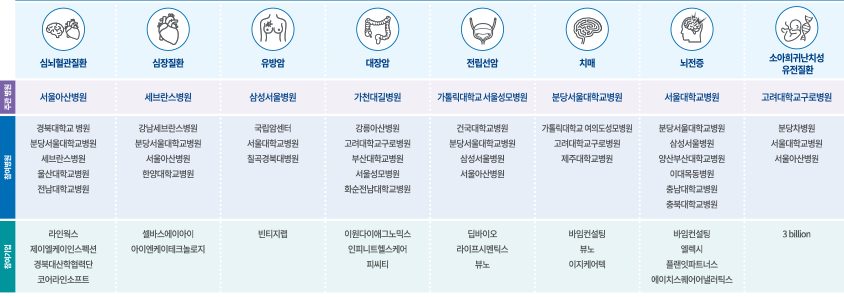8대 질환(심뇌혈관질환,심장질환,암(유방암,대장암,전립선암),치매,뇌전증,소아희귀난치성유전질환) 대상 21개